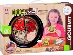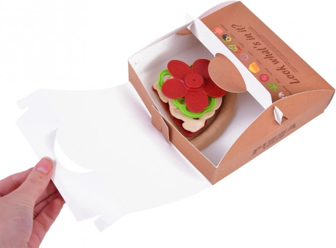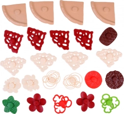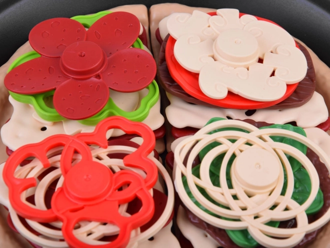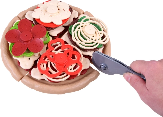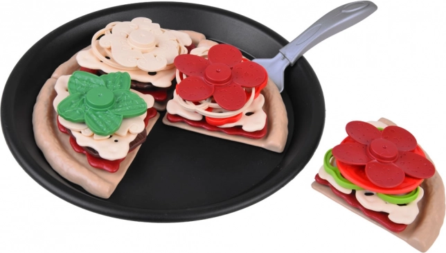 Pizza je rozdělena na dílky a jde snadno „krájet“ plastovým kolečkem. Děti si procvičí jemnou motoriku a zažijí realistickou přípravu pokrmu.