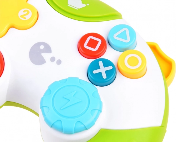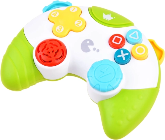 Tento hudební interaktivní ovladač vypadá jako skutečný gamepad a láká děti pestrými barvami, světelnými efekty a veselými melodiemi. Největší tlačítko umožňuje dětem „skládat“ vlastní zvukové sekvence, což přirozeně podporuje kreativitu a hudební cítění.