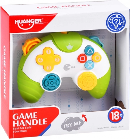 Barevný dětský ovladač ve stylu herní konzole přináší světla, melodie a zvukové efekty, které rozvíjejí jemnou motoriku, sluch a představivost. Díky ergonomickému tvaru pro malé ručičky a realistickému rozmístění tlačítek si děti užijí bezpečnou napodobenou hru bez půjčování skutečného ovladače.