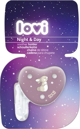 Praktický řetízek na dudlík LOVI Night & Day pro holčičky spolehlivě zabrání ztrátě a ušpinění dudlíku. Díky pevnému klipu drží na oblečení, zaoblený bezpečný tvar minimalizuje riziko poškrábání a univerzální úchyt pasuje k většině dudlíků. Materiál je bez BPA a vhodný od 0m+.