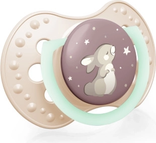Praktický úchyt, který ve tmě jemně svítí, usnadňuje rychlé nalezení a podání šidítka během noci.