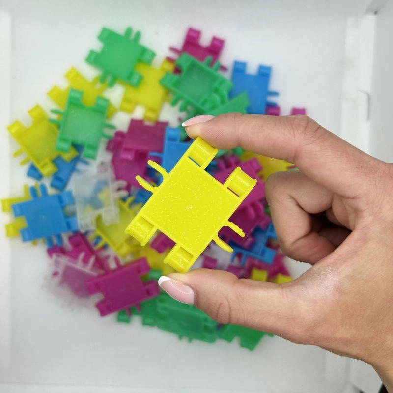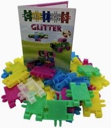 Glitter dílky s lesklým efektem dodají každé stavbě WOW efekt a motivují děti k další tvořivosti.