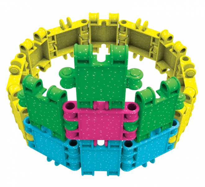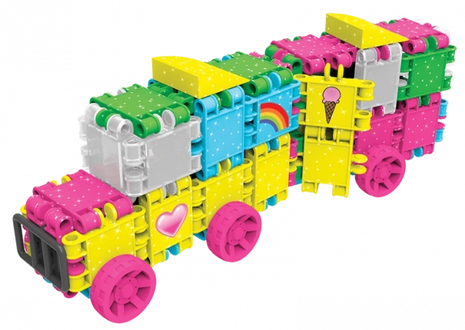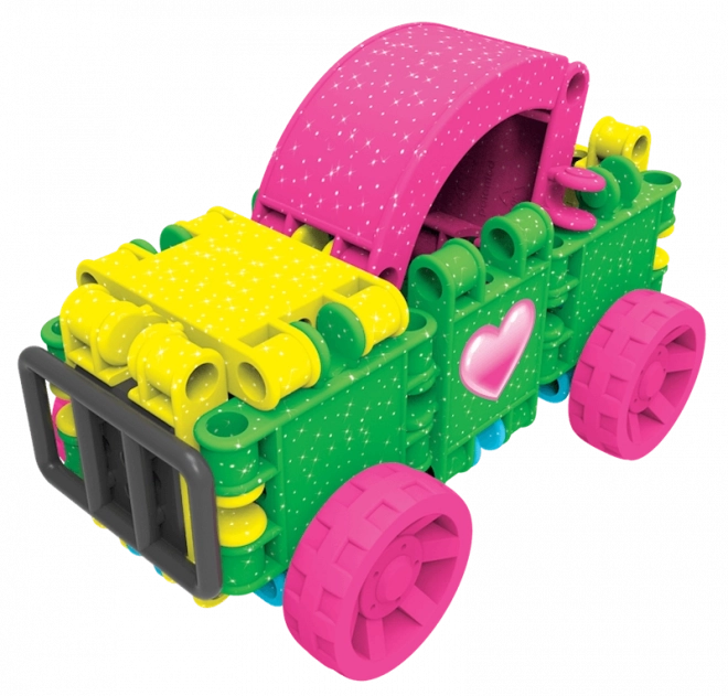 Třpytivá edice CLICS GLITTER přináší zářivé barvy a snadné spojování, které děti okamžitě baví. Z 175 dílků vytvoříte rozkošné modely jako pejsek, kabelka, letadlo, autíčko či fantazijní postavičky. Odolné zacvakávací spojení udrží tvar, ale zároveň umožní nekonečné přestavování.