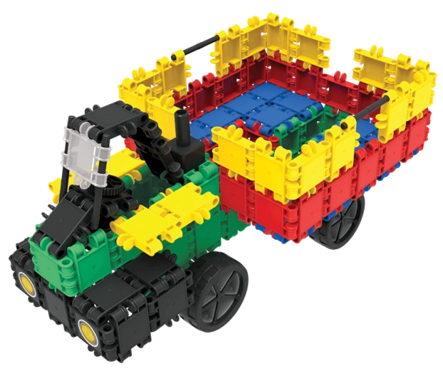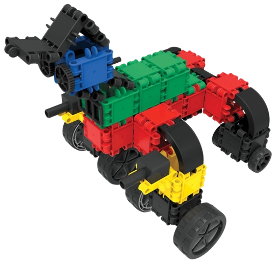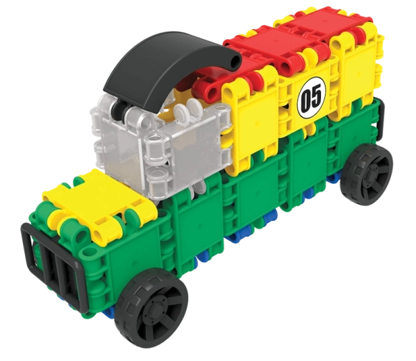 Postavte vozidla, zvířata i fantazijní stroje. Široká škála tvarů a barev podporuje kreativní hru a variabilitu staveb.