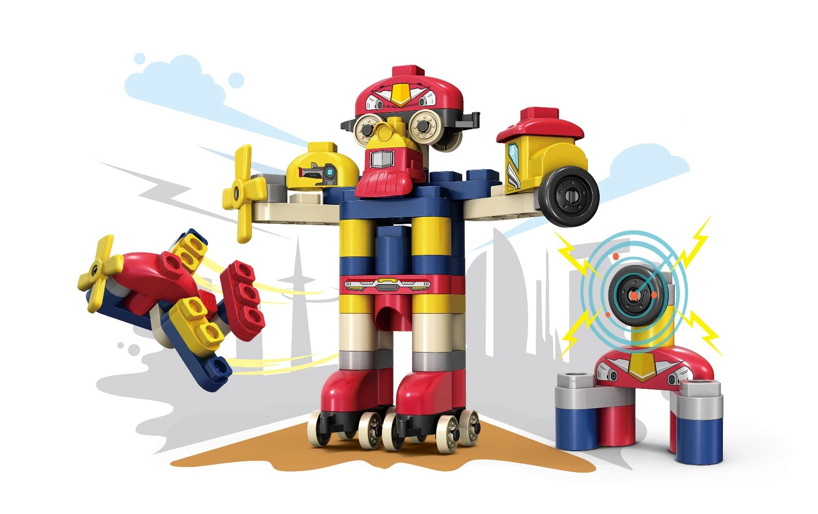 Sada umožňuje snadno sestavit barevného robota a další tvary podle fantazie. Děti si hravou formou zdokonalují prostorovou představivost.