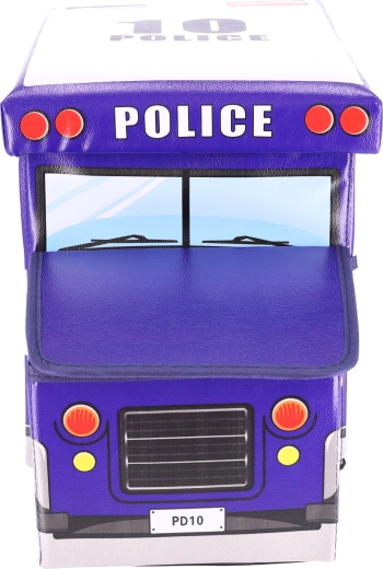 Dětský úložný box ve tvaru policejního auta spojuje praktické ukládání a zábavu. Nabízí velkorysý prostor pro hračky, kostky i knihy, má dva oddíly pro přehlednou organizaci a pevné víko pro snadný přístup. Díky robustní konstrukci poslouží jako sedák, podnožka i stoleček. Barevný policejní motiv skvěle oživí každý dětský pokoj a box se po složení zabere minimum místa.