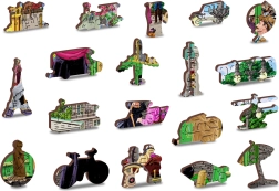 Nenechte si ujít příležitost objevit krásu unikátně tvarovaných dílků našeho WOODEN CITY puzzle. Každý dílek je vytvarován laserem a některé v podobě zvířat, budov či předmětů, což zvyšuje estetickou hodnotu výsledku. Puzzle jsou oboustranná, takže je můžete skládat jak okruh fotografie, tak dle vzoru na druhé straně.