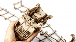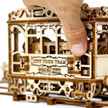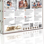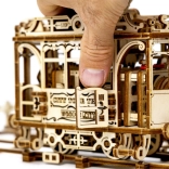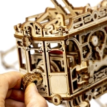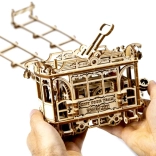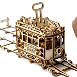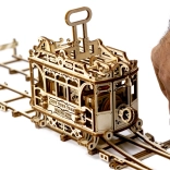 Tato precizně vyřezaná tramvaj z březové překližky přináší autentický zážitek z mechaniky – od ozubených koleček a převodů až po gumičkový motor. Po sestavení tramvaj vyrazí na dodaných kolejích a potěší vás plynulým chodem i elegantním designem.