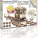 Postavte si vlastní městskou tramvaj z přírodní překližky a užijte si její funkční mechaniku na přiložených kolejích. Model se pohybuje na gumičkový pohon, umí jet vpřed i vzad, má regulaci směru i rozjezdu a na jedno natažení ujede až 3 metry. Skládání bez lepidla s detailním zpracováním je skvělá zábava pro děti i dospělé.