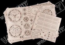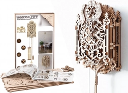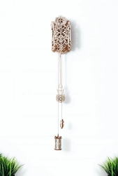 Model se skládá z přírodního materiálu - kvalitní březové překližky. Hlavní výhodou je skládání bez použití lepidla nebo nářadí. Hodiny jsou funkční po natažení a poskytují příjemný zvuk tikání až 12 hodin.
