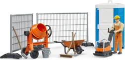 Míchačka, vibrační deska, kolečko, nářadí, zábrany a mobilní toaleta vytvářejí autentické scény a podporují kreativní hraní.