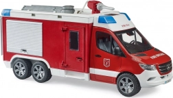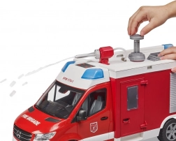 Realistický hasičský vůz MERCEDES-BENZ Sprinter od značky Bruder potěší každého malého záchranáře. Nabízí funkční vodní dělo s nádrží a čerpadlem, světelný a zvukový modul, otevíratelné dveře a úložné prostory a měkké běhouny pneumatik pro skvělou hratelnost. Kvalitní zpracování z odolného ABS plastu a kompatibilita s BWORLD příslušenstvím zajistí dlouhou životnost i zábavu.