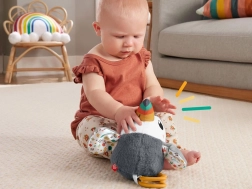 Roztomilý tukan od Fisher‑Price je měkoučká závěsná hračka na kočárek, autosedačku i postýlku. Nabízí jemné chrastění, šušťivé křidélka, barevný zobáček a kousací kroužky pro úlevu při prořezávání zoubků. Díky univerzálnímu klipu je vždy po ruce a podporuje smyslový rozvoj i jemnou motoriku miminka od narození.