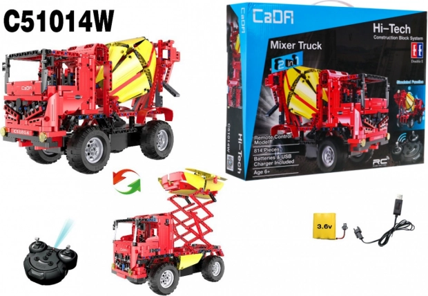 Tato technická stavebnice CaDA potěší malé i velké stavitele. Díky robustní konstrukci, funkčním prvkům a spolehlivému RC ovládání si děti užijí hodiny akční zábavy i rozvoje jemné motoriky a představivosti. Sada nabízí 2 modely v jednom balení: detailní míchačku betonu a alternativně nákladní vůz s funkčním nůžkovým zdvihem.