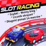Závodní dráha s 14metry délky nabízí nezapomenutelnou zábavu pro mladé závodní nadšence. S touto dráhou mohou děti zažít opravdovou vzrušující simulaci rychlých závodů s přepínatelnými režimy rychlosti.