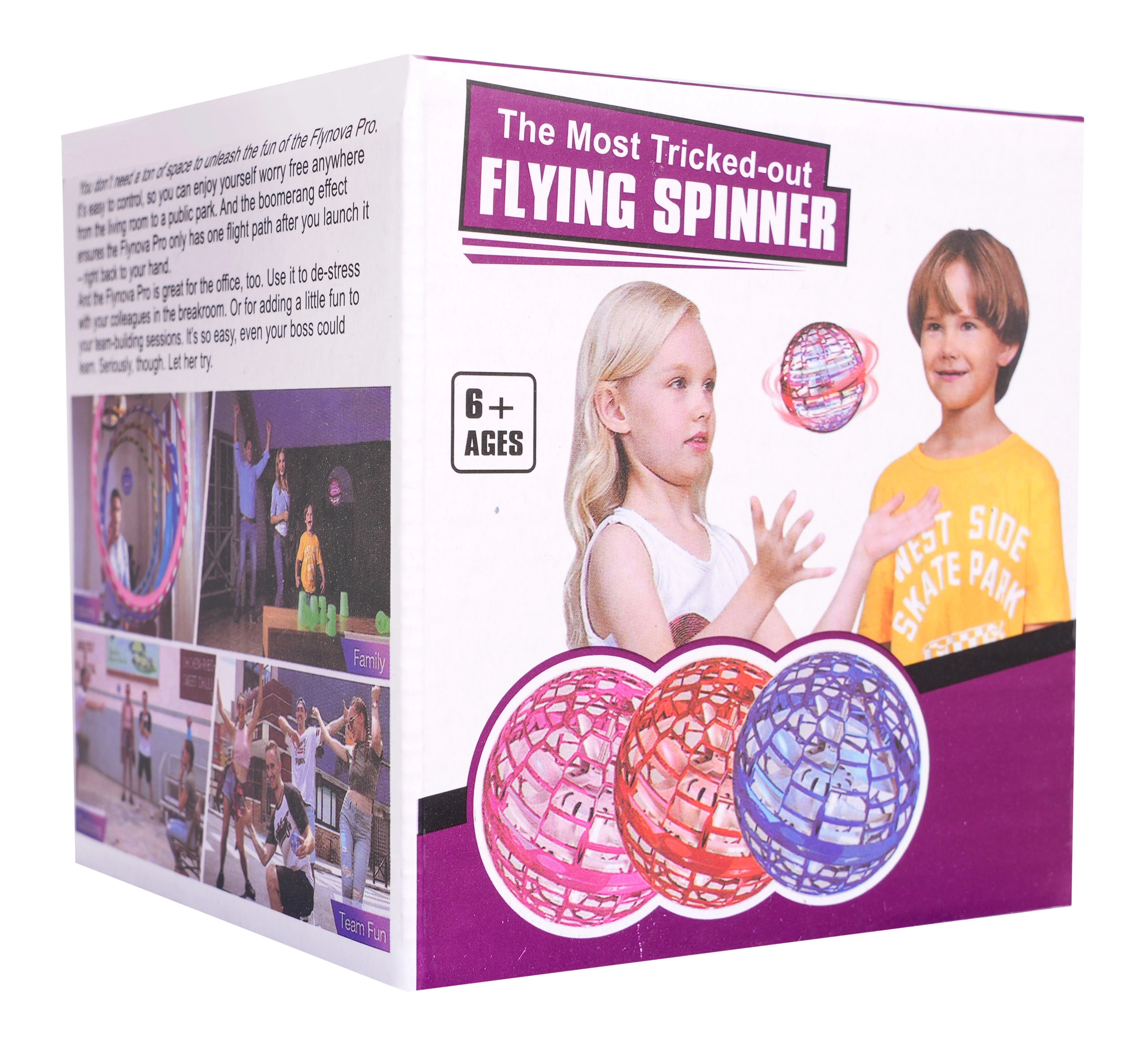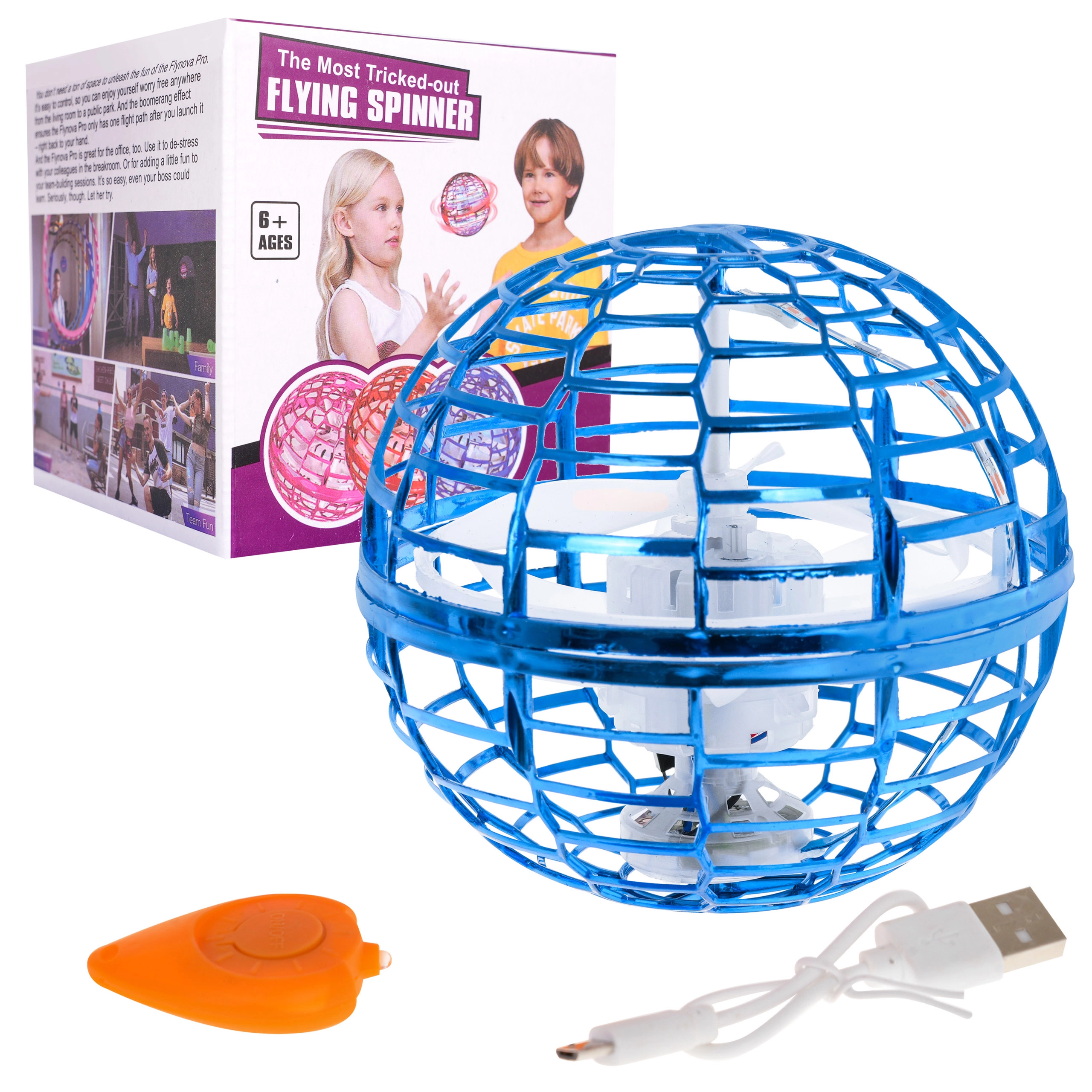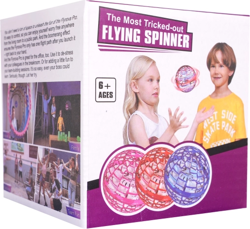 Tato lehká a odolná létající koule s ochrannou mřížkou skrývá vrtuli uvnitř, takže je hra bezpečná i pro menší děti. Reaguje na směr a úhel hodu – může letět v přímce nebo se vracet jako bumerang. Barevné LED diody dodají každému letu poutavou podívanou.