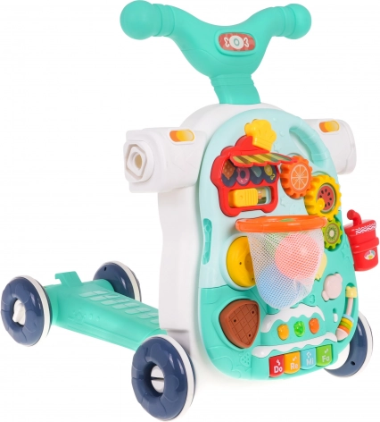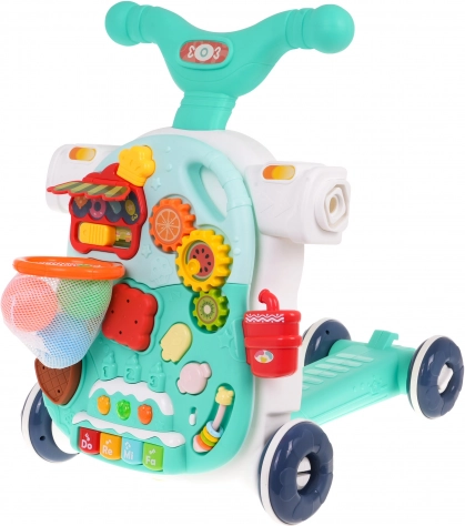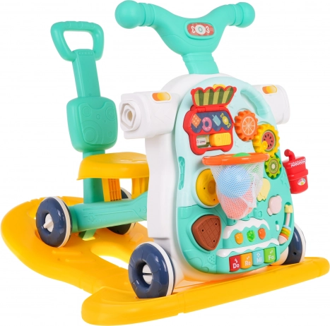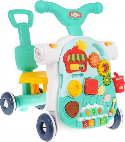 Interaktivní dětský jezdík a stoleček 5v1 je skvělý pro rozvoj dítěte. Je navržen tak, aby byl flexibilní a více variantový - můžete jej přeměnit na: