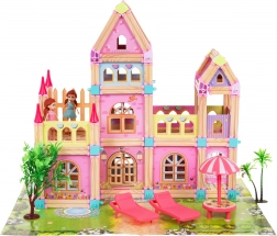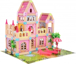 Dětský dřevěný domek pro princezny nabízí možnost stavby krásného domku s kreativními prvky pro děti. Sada obsahuje 183 kusů stavebních prvků, včetně dvou figurinek princezen, díky nimž mohou děti rozvíjet své vypravěčské dovednosti. Domek má několik pater a balkónky, což umožňuje rozmanité herní scénáře.