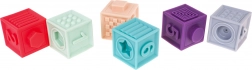 Sada obsahuje 6 měkkých kostek s čísly a reliéfy. Podporují rané počítání, třídění i skládání věží.