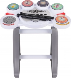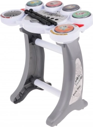 Objevte zábavnou a naučnou hračku pro malé hudebníky: elektronickou bicí soupravu na stojanu se stoličkou. Nabízí 5 padů, 6 bubenických rytmů, 5 demo melodií, regulaci hlasitosti a funkci reset. Ideální pro děti od 6 let, rozvíjí rytmus, koordinaci a kreativitu.