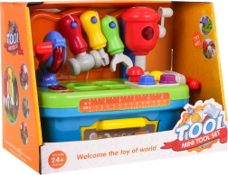 - stůl–dílna, kladivo s funkcí, kladívko, šroubovák, francouzský klíč, kotoučová pila, 2× šroub, 2× hřebík, 4× kostička, zásuvka