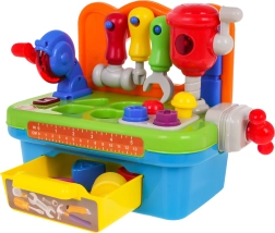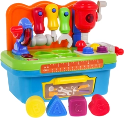 Objevte zábavnou a bezpečnou hračku pro malé kutily od 24 měsíců: barevná dětská dílna se sortérem, světelnými a zvukovými efekty a bohatým příslušenstvím. Podporuje jemnou motoriku, učení tvarů i kreativní hru. Nechybí otáčecí kotoučová pila, pohyblivé kladivo, pracovní svěrák, šrouby, hřebíky a nářadí perfektní do malých dětských rukou.