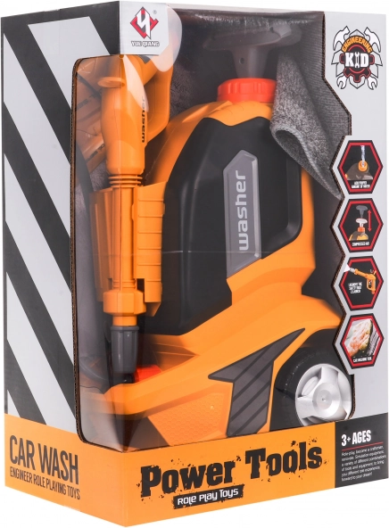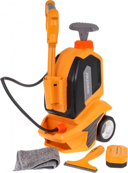 Dětská myčka s funkcí vody je navržena tak, aby děti bavila a zároveň je učila o údržbě vozidel. Stačí naplnit nádržku na vrchu hračky vodou a pohybovat rukojetí nahoru a dolů, aby začala stříkat voda. Hračka je dodávána s: