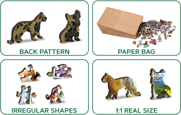Každý z 1010 dílků je jiný, takže vás čeká chytrá výzva a uspokojivý výsledek. Po složení vznikne barevná koláž zvířecích motivů, která se skvěle vyjímá jako dekorace na stěně či polici. Značka WOODEN CITY myslí na udržitelnost – bez plastových obalů, z kvalitního dřeva a s dlouhou životností.