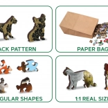Speciálně tvarované dílky ve tvaru zvířat a předmětů oživují skládání. Rubová strana s dekorativním vzorem přidává novou výzvu.