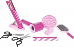 - fén, difuzér, koncentrátor (nasazovací nástavec), žehlička, nůžky, efilační nůžky, hřeben, kartáč, stojan na fén
