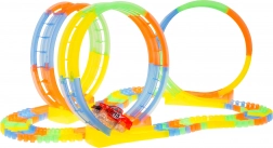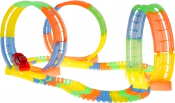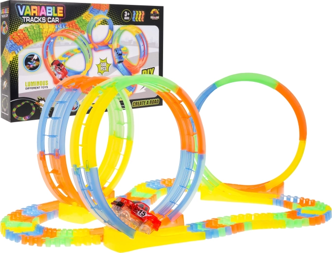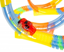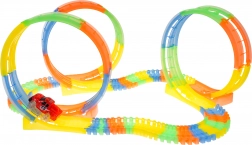 Tato barevná a flexibilní dráha je ideální pro malé závodníky. Díky 148 dílům sestavíte rovinky, zatáčky i 3 smyčky, ve kterých autíčko zvládá plný 360° obrat. Fluorescenční segmenty po nasvícení svítí, takže si děti užijí závody i ve tmě.
