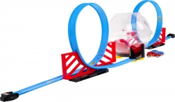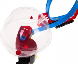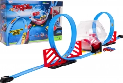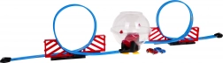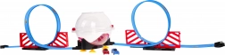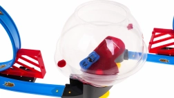 Postavte si vlastní závodní arénu s dvouproudovou dráhou, dvěma smyčkami a centrální průhlednou kulí. Díky dvěma nezávislým trasám mohou děti uspořádat skutečné souboje rychlosti. Natažením autíčka dozadu se aktivuje pohon pull back a autíčko vyrazí vstříc smyčce, zapadne do koule a uvnitř provádí strhující rotace.