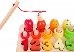 Barevné rybičky s magnetem a dřevěná udice promění učení v zábavnou hru. Děti procvičí soustředění i jistotu úchopu.