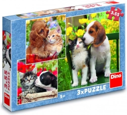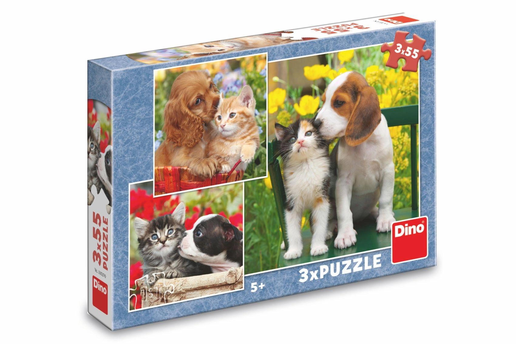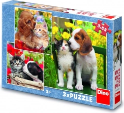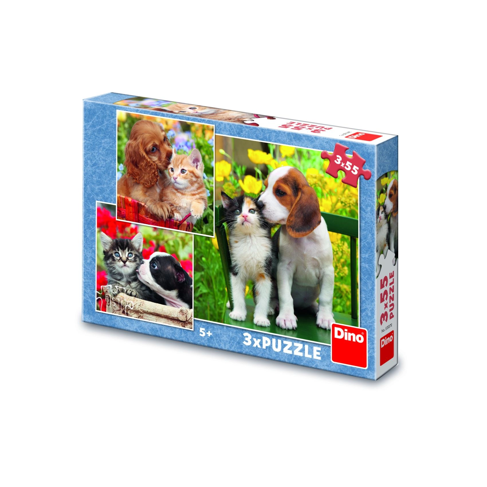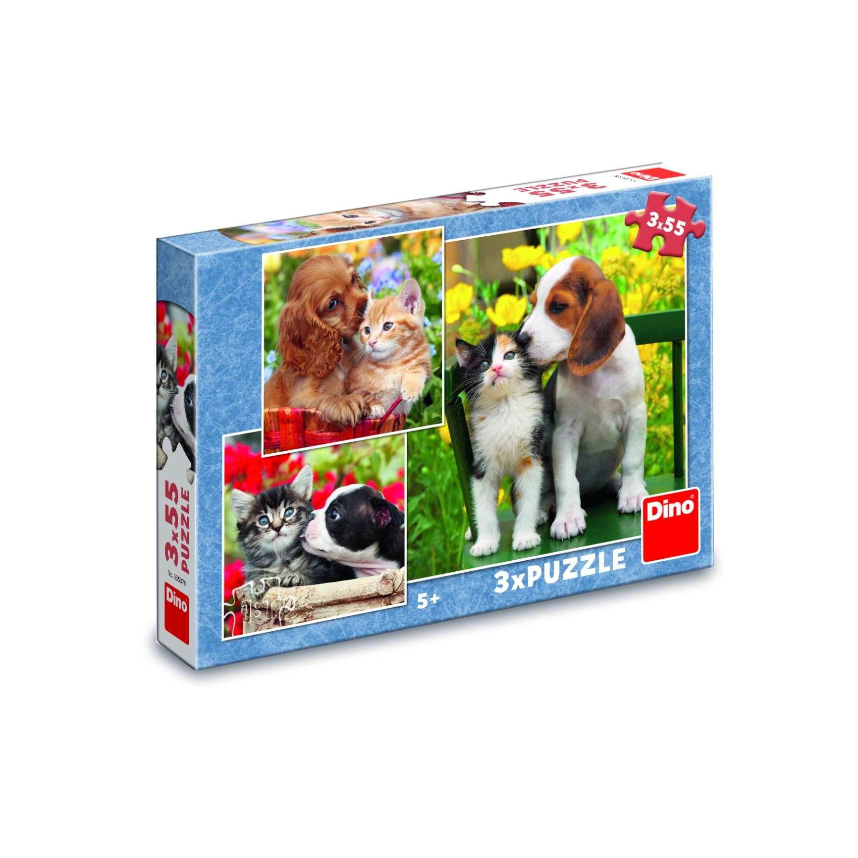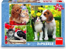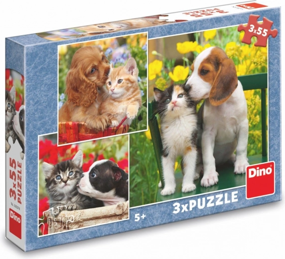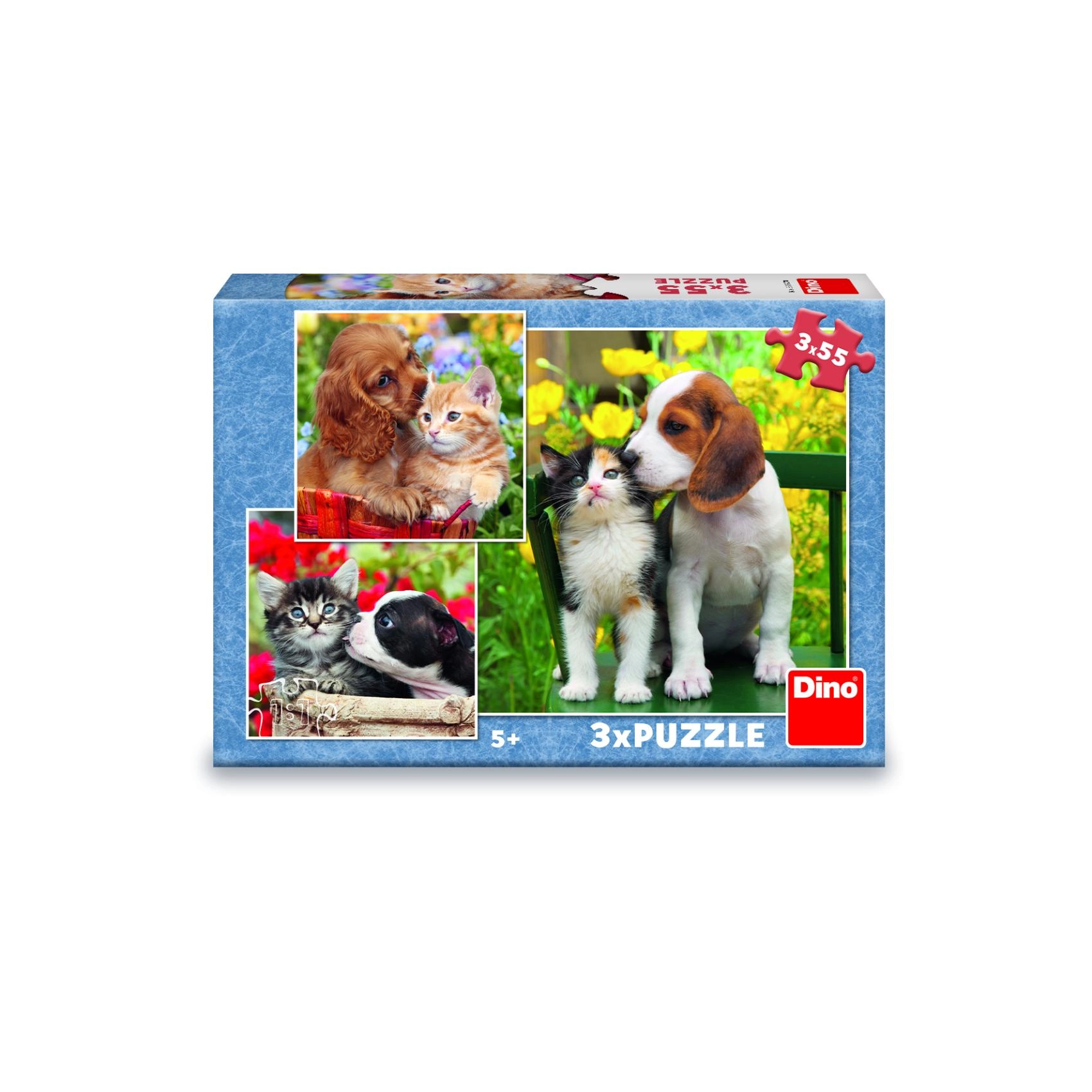 Roztomilá trojice skládaček s motivy koťat a štěňat přináší zábavu a učení v jednom. Každé puzzle má 55 dílků a zaujme barevnými, detailními záběry zvířecích kamarádů. Děti si při skládání procvičí jemnou motoriku, prostorovou představivost a schopnost soustředění. Puzzle jsou vyrobené z odolné lepenky a pocházejí z ČR.