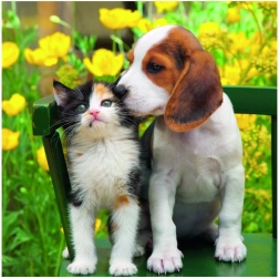 Každé puzzle přináší jinou dvojici kotěte a štěněte, která potěší děti i dospělé a ozdobí každou dětskou poličku hotovým obrázkem.