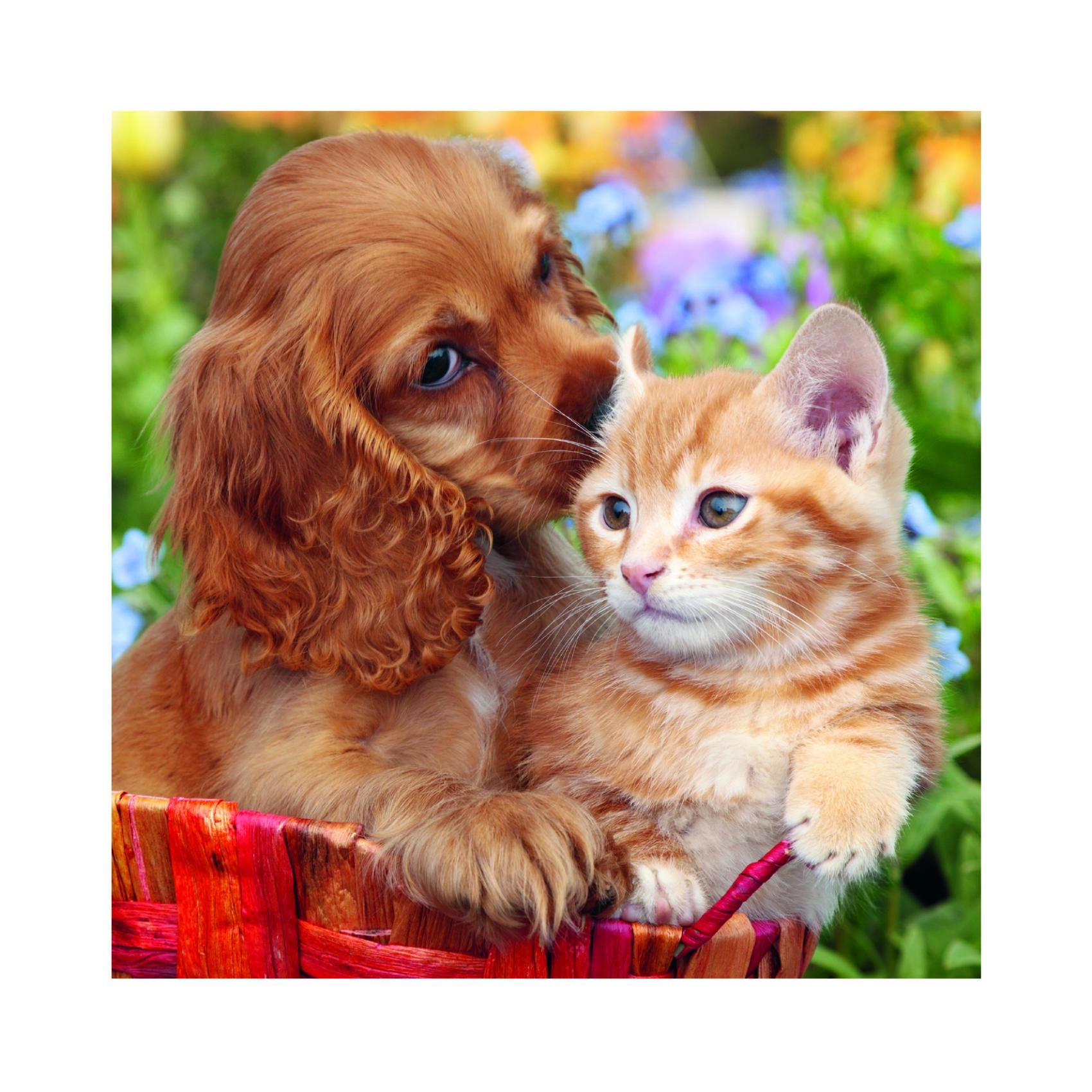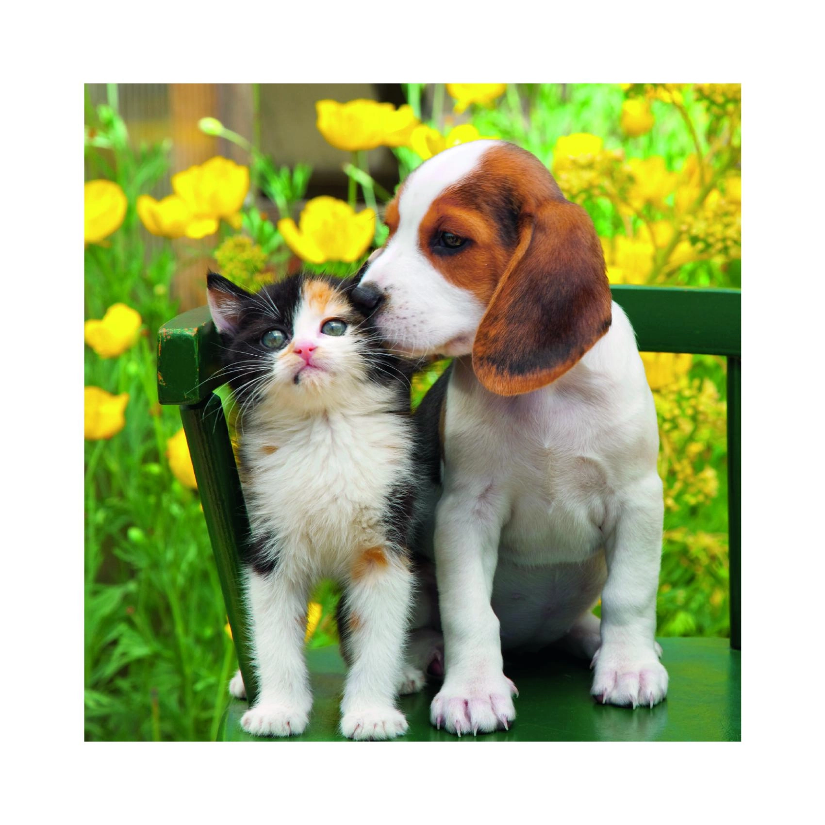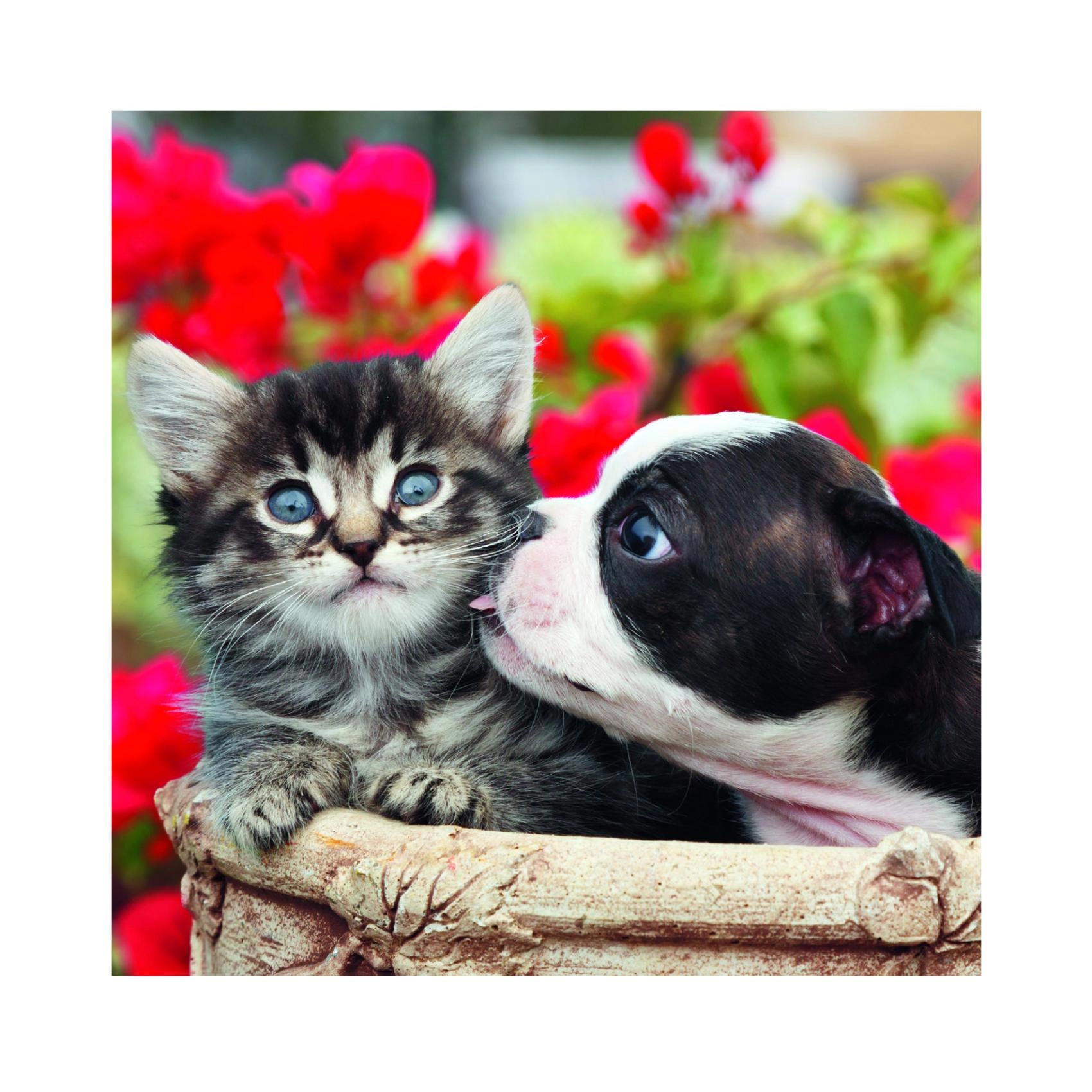Tři různá puzzle s přátelskou dvojicí kotěte a štěněte v každém obrázku potěší malé milovníky zvířat i rodiče, kteří hledají smysluplnou zábavu. Každý z 55 dílků přesně zapadá a díky kvalitnímu potisku vyniknou syté barvy i jemné detaily.