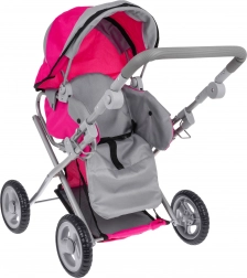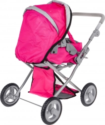 Kočárek pro panenky 2 v 1 věrně napodobuje skutečný model – poslouží jako hluboký s gondolou i jako sportovní kočárek. Pevná kovová konstrukce, textilní potahy a čtyři kola zajišťují stabilitu a snadné manévrování, takže jej bez problémů ovládnou i nejmenší děti. Praktická skládací stříška chrání panenku a bezpečnostní pásy ji udrží na místě.