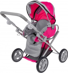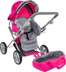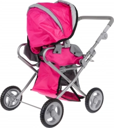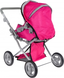 Stylový růžový kočárek pro panenky 2 v 1 pro děti od 3 let. Nabízí vyjímatelnou gondolu i sportovní sezení, nastavitelnou rukojeť 30–54 cm, bezpečnostní pásy, polohování sedáku a skládací stříšku. Díky lehké kovové konstrukci a možnosti rychlého složení pro transport se skvěle hodí domů i na cesty; nechybí ani síťovaný košík na doplňky.