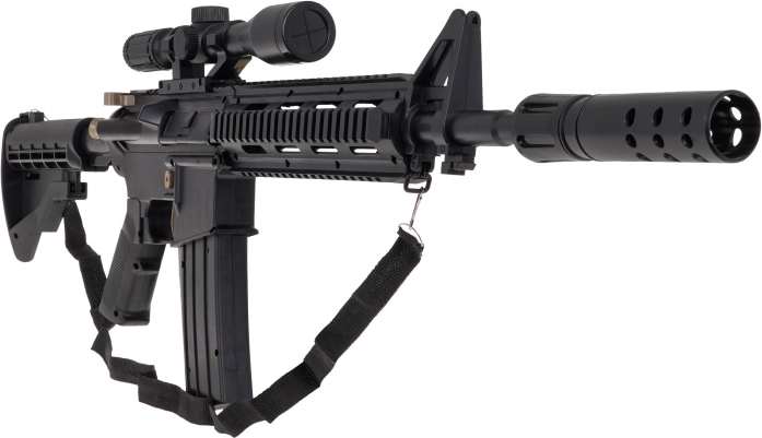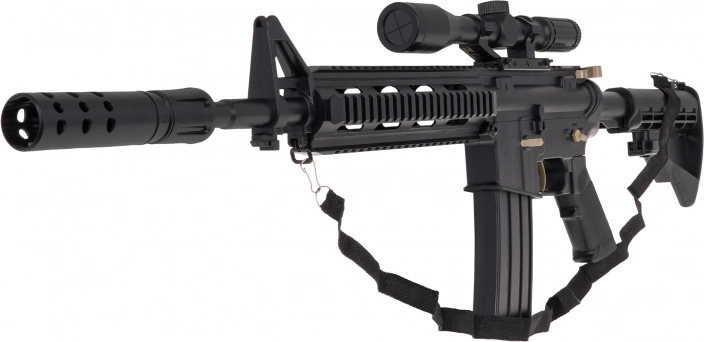 Blástr je vybaven optikou se zvětšením a nastavováním vzdálenosti cíle, takže míření je přesné a zábavné. Dobíjecí baterie 3,7 V se nabíjí přes USB kabel (součástí balení). Pro pohodlné nošení poslouží ramenní popruh a odnímatelný tlumič dotvoří taktický vzhled.