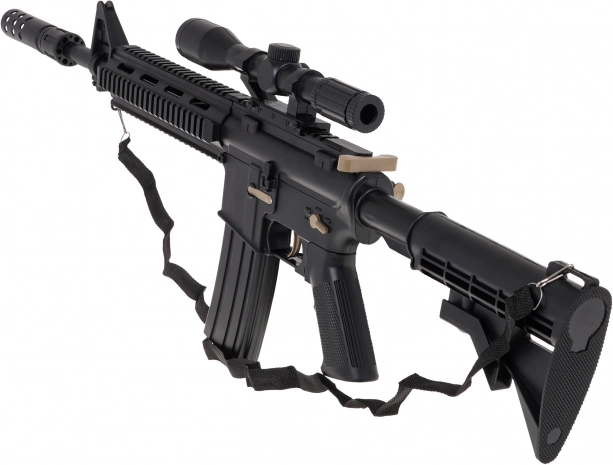 Realistický gelový blástr M4 pro zábavnou střelbu s hydrogelovými kuličkami přináší skvělý zážitek pro starší děti a teenagery. Nabízí manuální i automatický režim střelby, optický zaměřovač s přiblížením, odnímatelný tlumič a napájení akumulátorem 3,7 V. Součástí je sáček kuliček k přípravě, ochranné brýle i ramenní popruh.