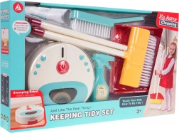 Zábavná interaktivní úklidová sada pro děti od 3 let s robotickým vysavačem přináší realistické efekty – světlo, zvuky vysávání a schopnost sbírat drobné nečistoty. Děti si hravou formou osvojí pořádek a samostatnost díky kompletnímu příslušenství: smeták, lopatka, smetáček a „čisticí prostředek“.