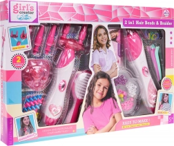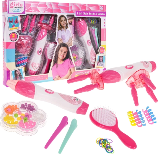 Objevte zábavný způsob, jak tvořit originální účesy! Tato mega sada 2 v 1 na pletení copánků a zdobení vlasů korálky je ideální pro děti od 5 let. Obsahuje dvě zařízení – elektrickou mašinku na pletení a aplikátor korálků bez baterií, dále barevné korálky, gumičky, spinky a kartáč. Jednoduché ovládání a bohaté příslušenství podporují kreativitu a jemnou motoriku.