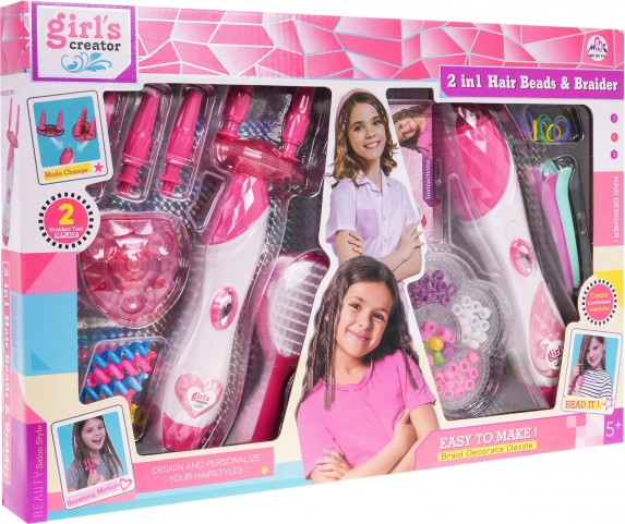 Mega sada na pletení copánků 2 v 1 s korálky pro děti