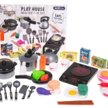 Tato úžasná kuchyňská sada obsahuje vše, co malý kuchař může potřebovat. Indukční sporák, který se napájí třemi AA bateriemi, umožňuje realistické zvuky smažení a vaření, bezpečné plastové prvky jako hrnce, pánve a další příslušenství jsou ideální pro dětskou hru, bez ostrých hran a rizika zranění. Sada obsahuje různé atrapy potravin včetně vajec, ryby a zeleniny, které přidávají na autentičnosti hry.