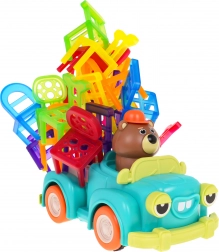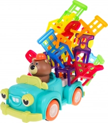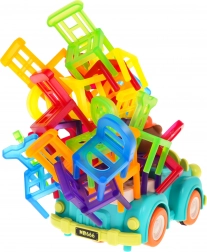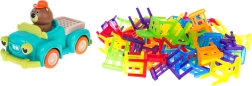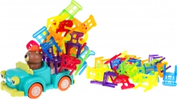 Hra dovednosti Skádací židle a auto je ideální pro děti od 3 let. Skládá se ze 48 barevných židliček různých tvarů a auta, které jezdí po kruhu. Vaším úkolem je postavit věž z židlí na pohybujícím se autíčku. Tento úkol zlepší koordinaci mezi rukou a okem a zvyšuje přesnost. Autíčko může měnit průměr otáčení mezi 40 cm a 120 cm pomocí kolečka ve spodní části vozu.