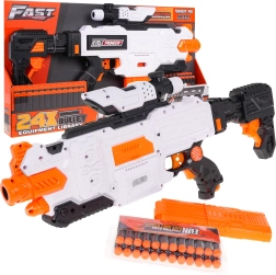 Tento poloautomatický pistol je skvělým doplňkem pro jakoukoliv kreativní hru. Použití je jednoduché: vložte pěnové náboje, zaměřte pomocí nastavitelného hledáčku a stiskněte spoušť. Staňte se hrdinou v jakémkoliv scénáři z akčních filmů!