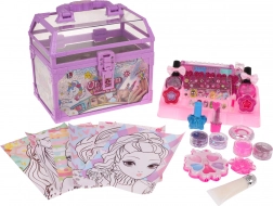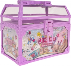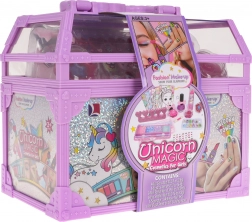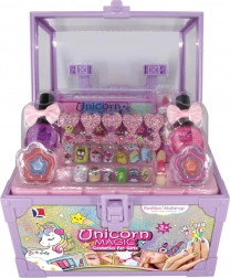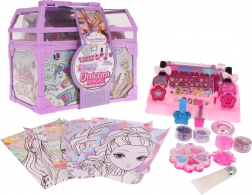 Obsahuje různé barvy laků na nehty, lesků na rty a stíny na oči. Vše je uloženo v dekorativní krabičce s motivem jednorožce.