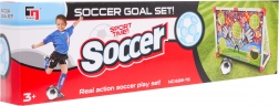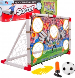 Set obsahuje vše potřebné pro hru - branku, síť, míč a pumpu.