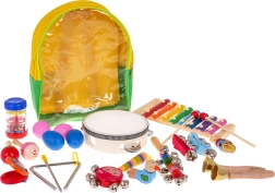 - Batoh, xylofon, tamburína, 2× palička k bubínku/xylofonu, triangl s úderníkem, 2× marakasy, 2× ruční rolničky, 2× rolničky na pásku, 4× vajíčko–shaker, válcovitá grzechotka, 2× píšťalka, návod na jednoduchou melodii
