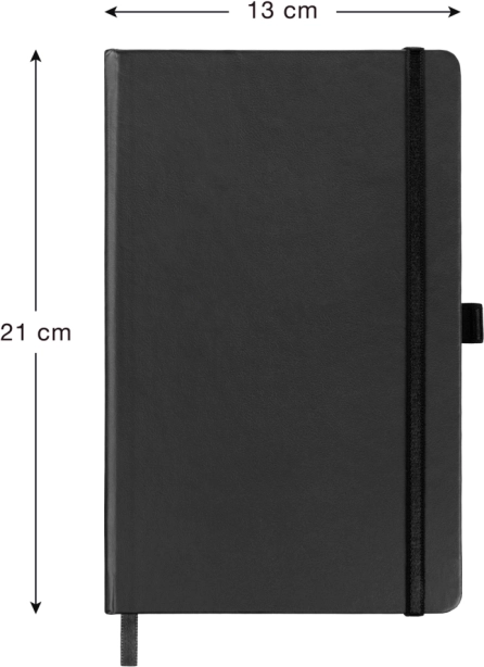 K praktickým detailům patří poutko na tužku, aby byl váš psací nástroj vždy po ruce, a vnitřní kapsa na vizitky či drobnosti. Díky rozměrům 13 × 21 cm a hmotnosti 352 g se příjemně drží a poskytuje stabilitu při psaní.